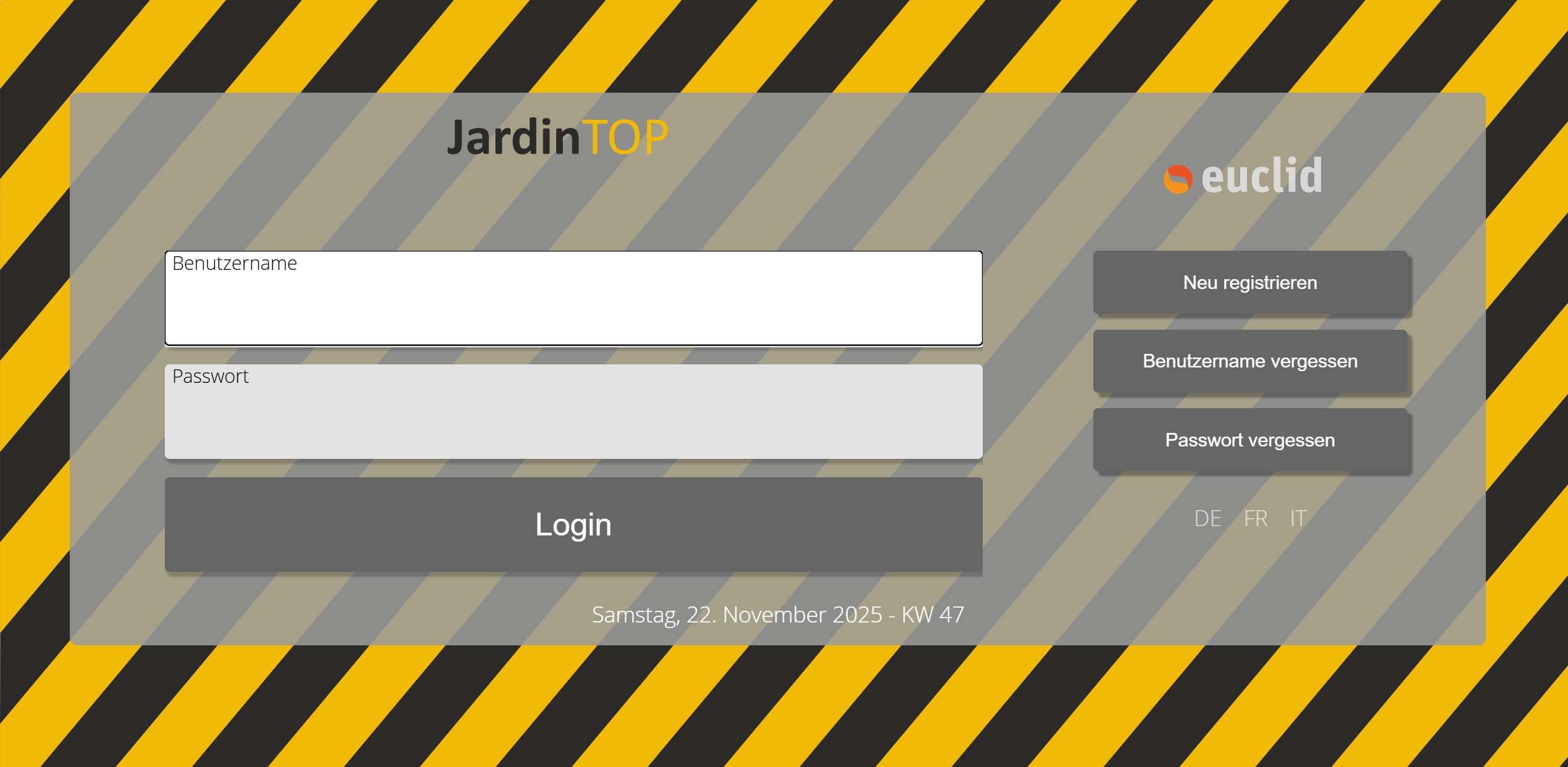 Das Login benötigt nur noch den Benutzername und das persönliche Passwort. Nach dem erfolgreichen Login überprüft euclid in allen Anwendungsbereichen welche Berechtigungen und Funktionen für die betreffende Person freigegeben sind. Die entsprechenden Funktionen werden dann automatisch in Form des Menubaums und/oder eigenen Startbuttons angeboten.